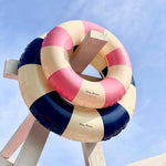 The Petites Pommes swim ring is a reborn childhood classic - made with the attention to detail we have strived to make it last for seasons. Our characteristic striped floats come in 4 different sizes for toddler to adult, and in a range of beautiful colours to complete any summer look!