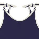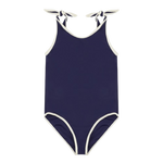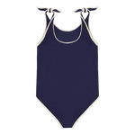 The cream-coloured contrast piping gives this style a timeless look that goes perfectly with our classic floats. Attached knot-bows on the shoulders adds a subtle feminine touch. Match with a tone-in-tone swim ring and swim goggles or mix your favourite colours for a beautiful complete look.