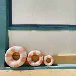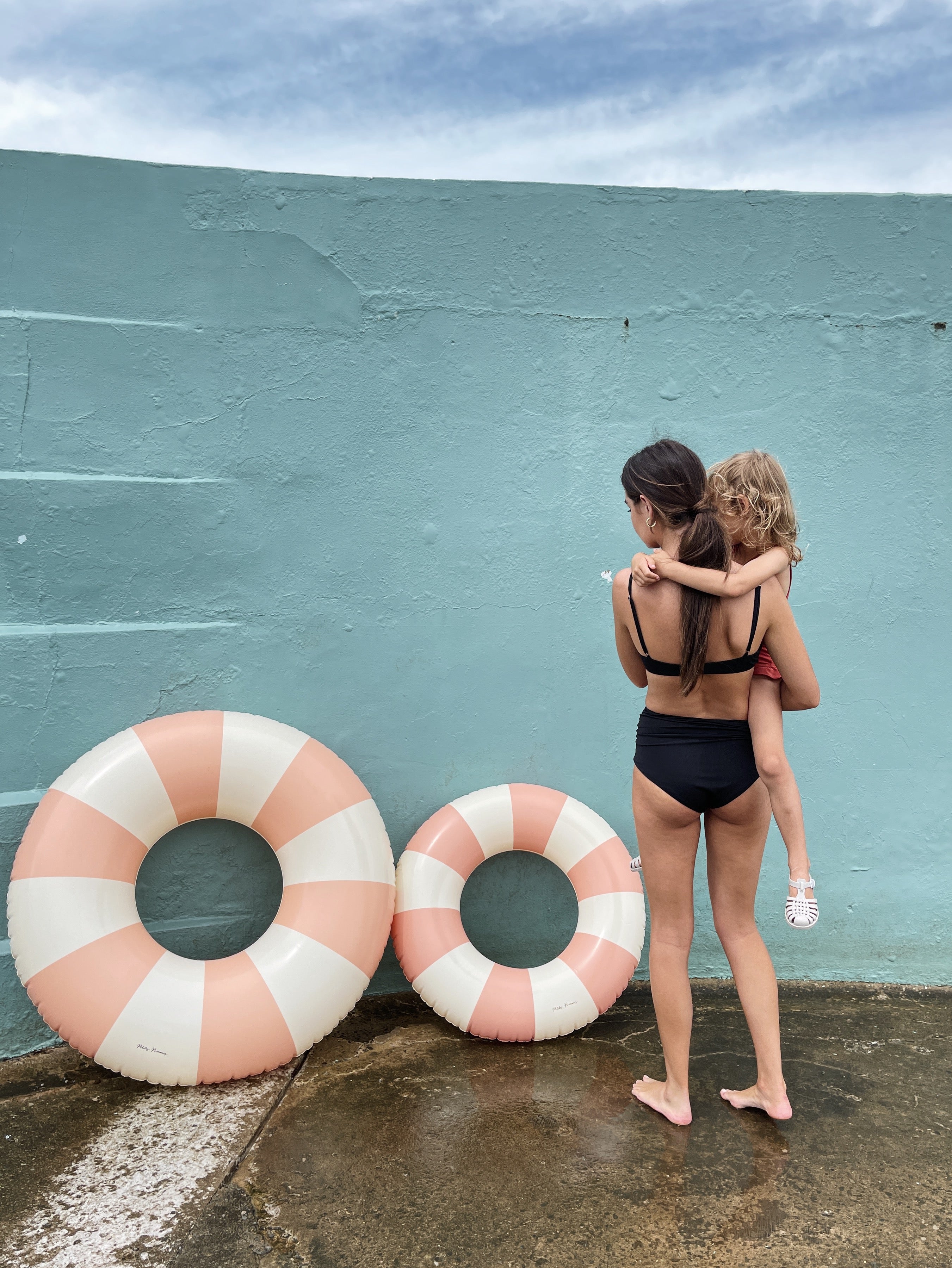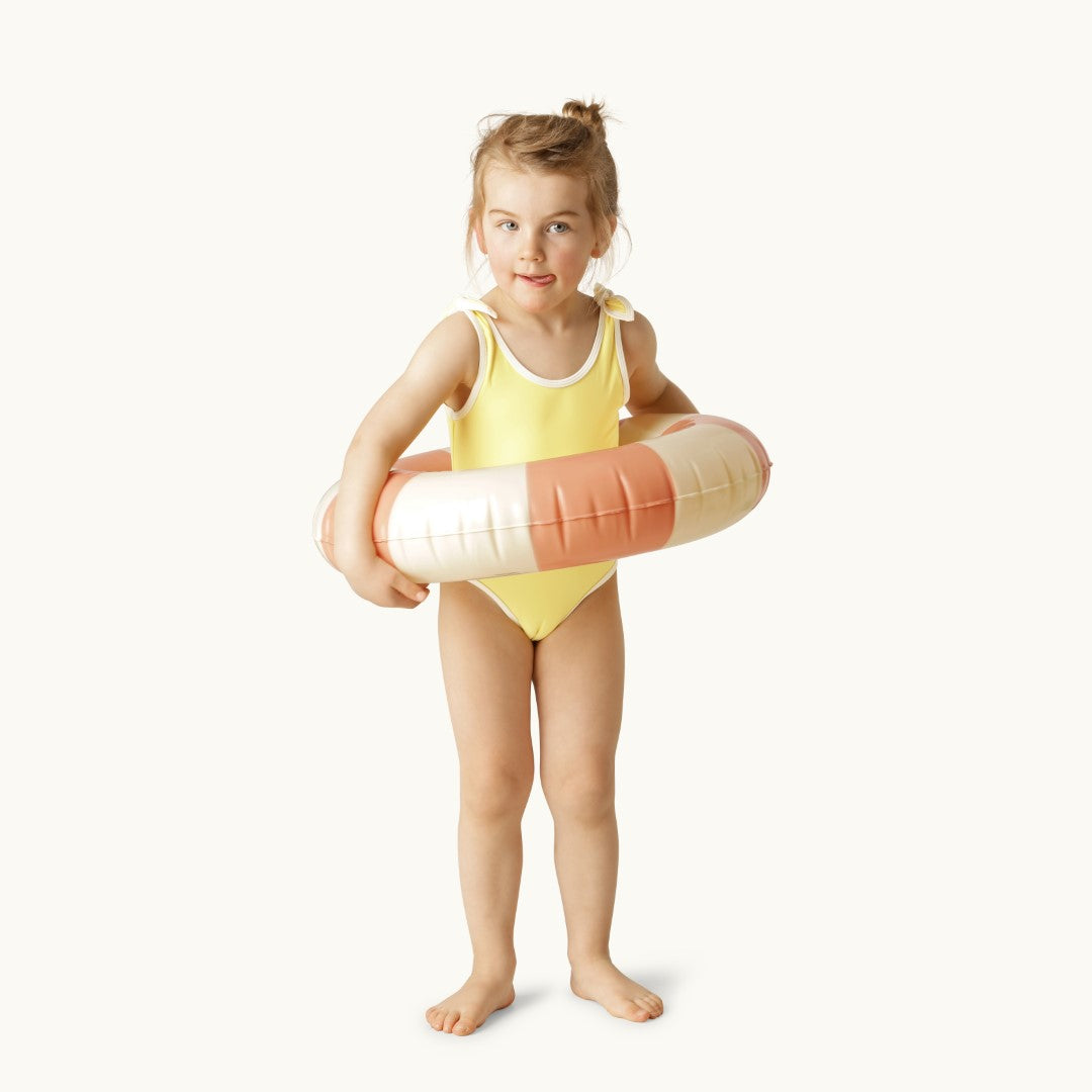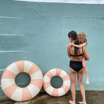 The Petites Pommes swim ring is a reborn childhood classic - made with the attention to detail we have strived to make it last for seasons. Our characteristic striped floats come in 4 different sizes for toddler to adult, and in a range of beautiful colours to complete any summer look!