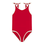 The cream-coloured contrast piping gives this style a timeless look that goes perfectly with our classic floats. Attached knot-bows on the shoulders adds a subtle feminine touch. Match with a tone-in-tone swim ring and swim goggles or mix your favourite colours for a beautiful complete look.