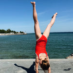 Our Elizabeth Swimsuit features a classic fit with a round cut in the front and back. It has a higher, flattering neckline that protects against the sun and gives the swimsuit a secure fit where the shoulders don't drop.