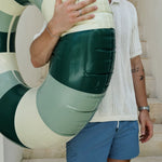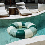 Our contemporary multi-coloured pool floats feature a combination of some of our most popular hues. Here a green dream in sage Calile and Deep Oxford Green.