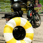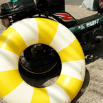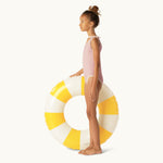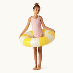 The Petites Pommes swim ring is a reborn childhood classic - made with the attention to detail we have strived to make it last for seasons. Our characteristic striped floats come in 4 different sizes for toddler to adult, and in a range of beautiful colours to complete any summer look!