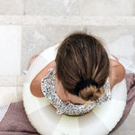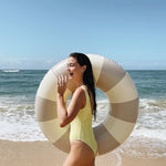 The Petites Pommes swim ring is a reborn childhood classic - made with the attention to detail we have strived to make it last for seasons. Our characteristic striped floats come in 4 different sizes for toddler to adult, and in a range of beautiful colours to complete any summer look!