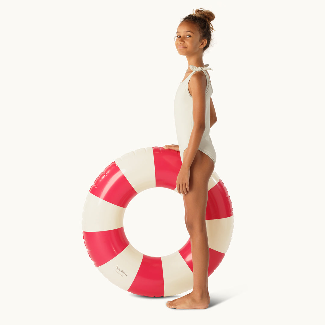 The Petites Pommes swim ring is a reborn childhood classic - made with the attention to detail we have strived to make it last for seasons. Our characteristic striped floats come in 4 different sizes for toddler to adult, and in a range of beautiful colours to complete any summer look!