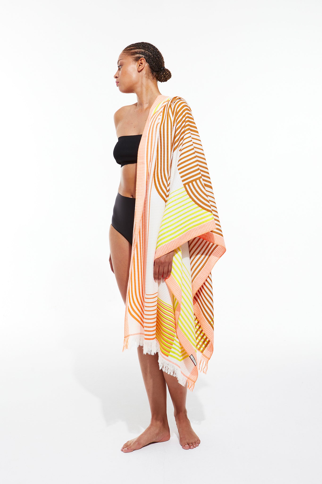 Hand-made with the greatest care based on traditional artisanal know-how by French master of iconic patterns and beautiful colours, MAPOÉSIE. This item features a cotton weave and hand screen-printing and can be used as a beautiful throw or beach towel. For a complete look combine with matching kimono.
