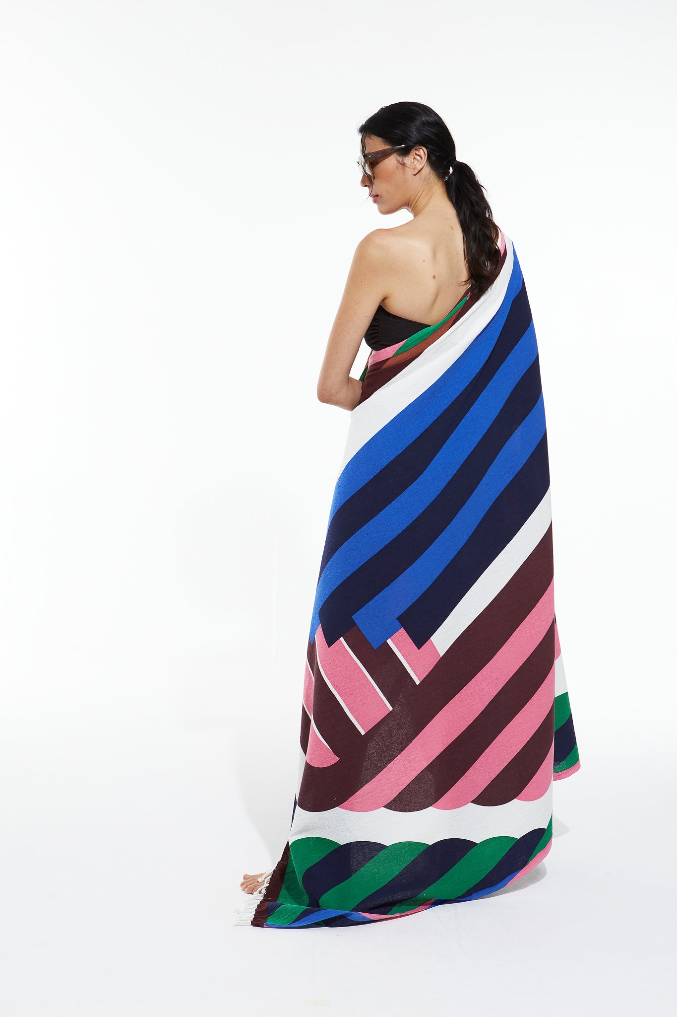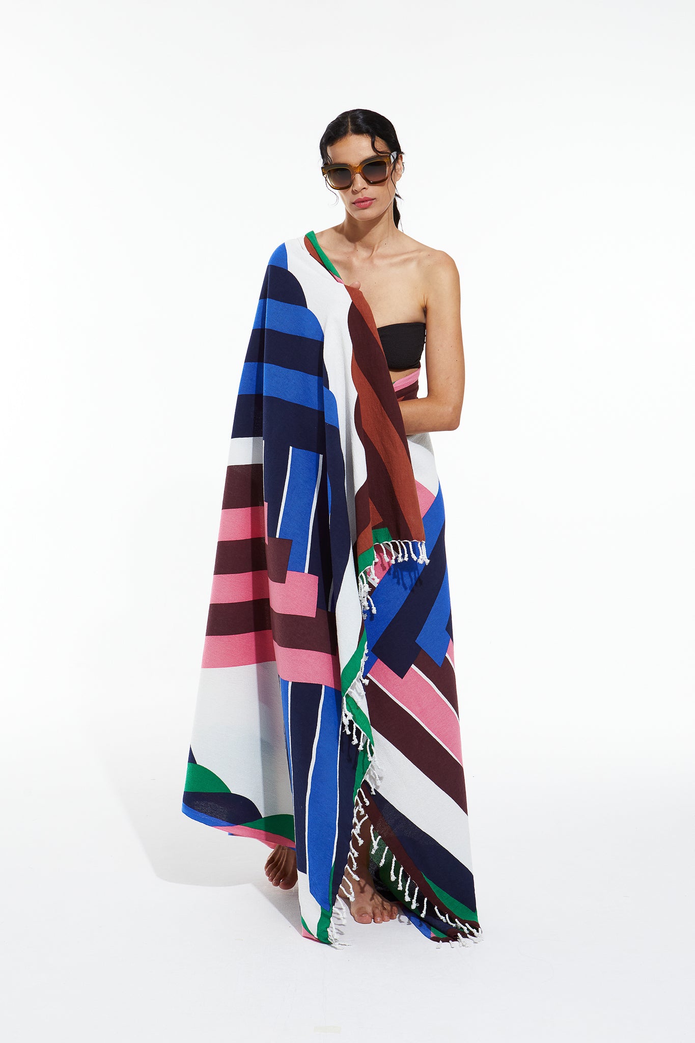 Hand-made with the greatest care based on traditional artisanal know-how by French master of iconic patterns and beautiful colours, Ma Poesie. This item features a cotton weave and hand screen-printing and with its generous size it can be used as a beautiful throw or beach blanket.