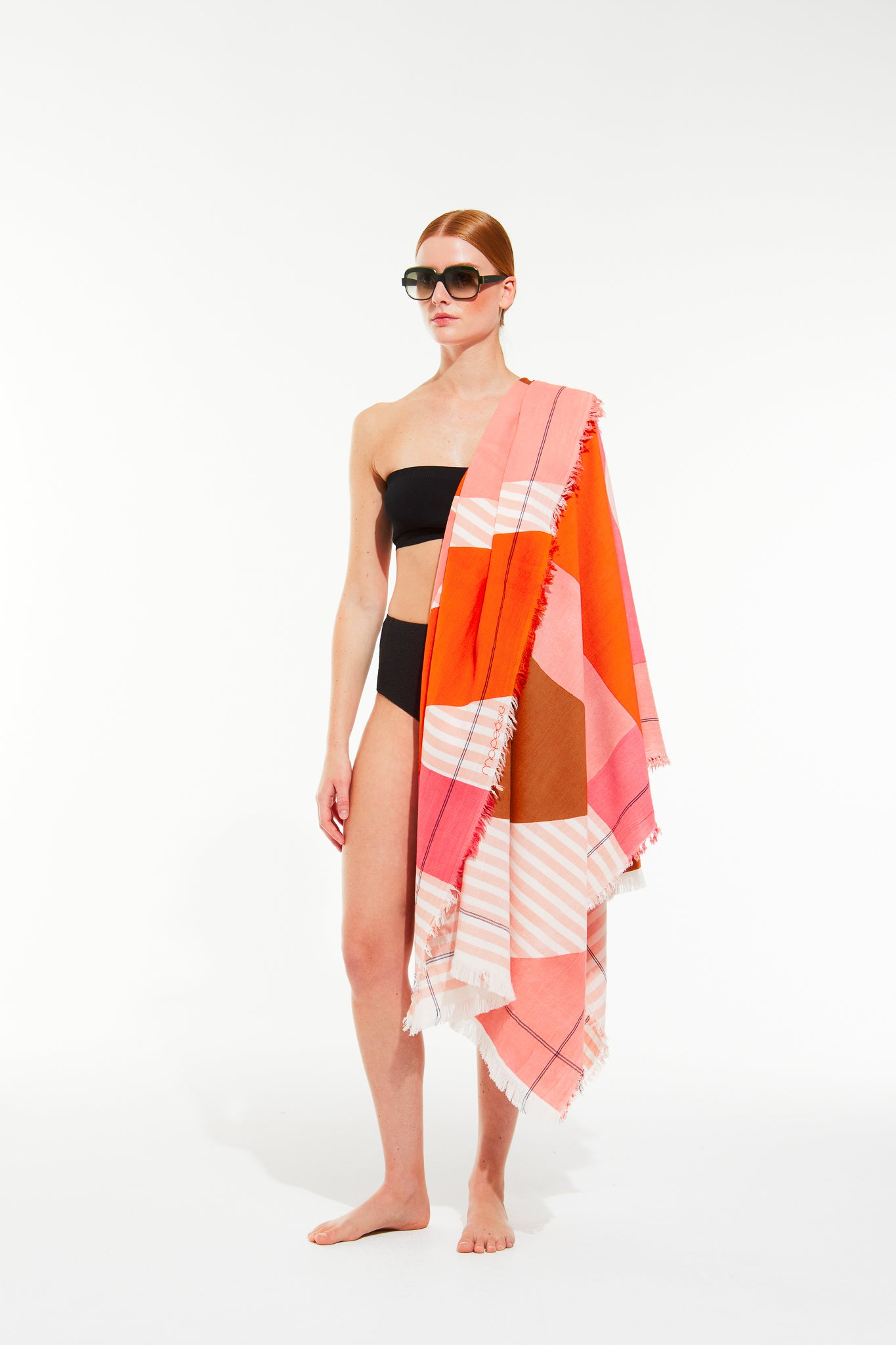 Hand-made with the greatest care based on traditional artisanal know-how by French master of iconic patterns and beautiful colours, Ma Poesie. This item features a cotton weave and hand screen-printing and with its generous size it can be used as a beautiful throw or beach blanket.