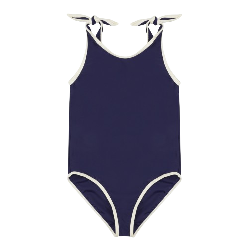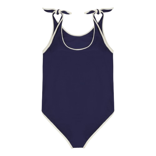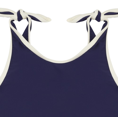 The cream-coloured contrast piping gives this style a timeless look that goes perfectly with our classic floats. Attached knot-bows on the shoulders adds a subtle feminine touch. Match with a tone-in-tone swim ring and swim goggles or mix your favourite colours for a beautiful complete look.