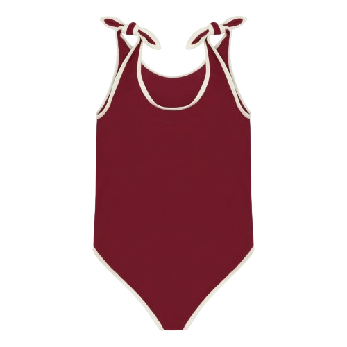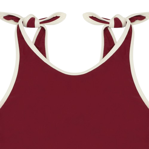 The cream-coloured contrast piping gives this style a timeless look that goes perfectly with our classic floats. Attached knot-bows on the shoulders adds a subtle feminine touch. Match with a tone-in-tone swim ring and swim goggles or mix your favourite colours for a beautiful complete look.