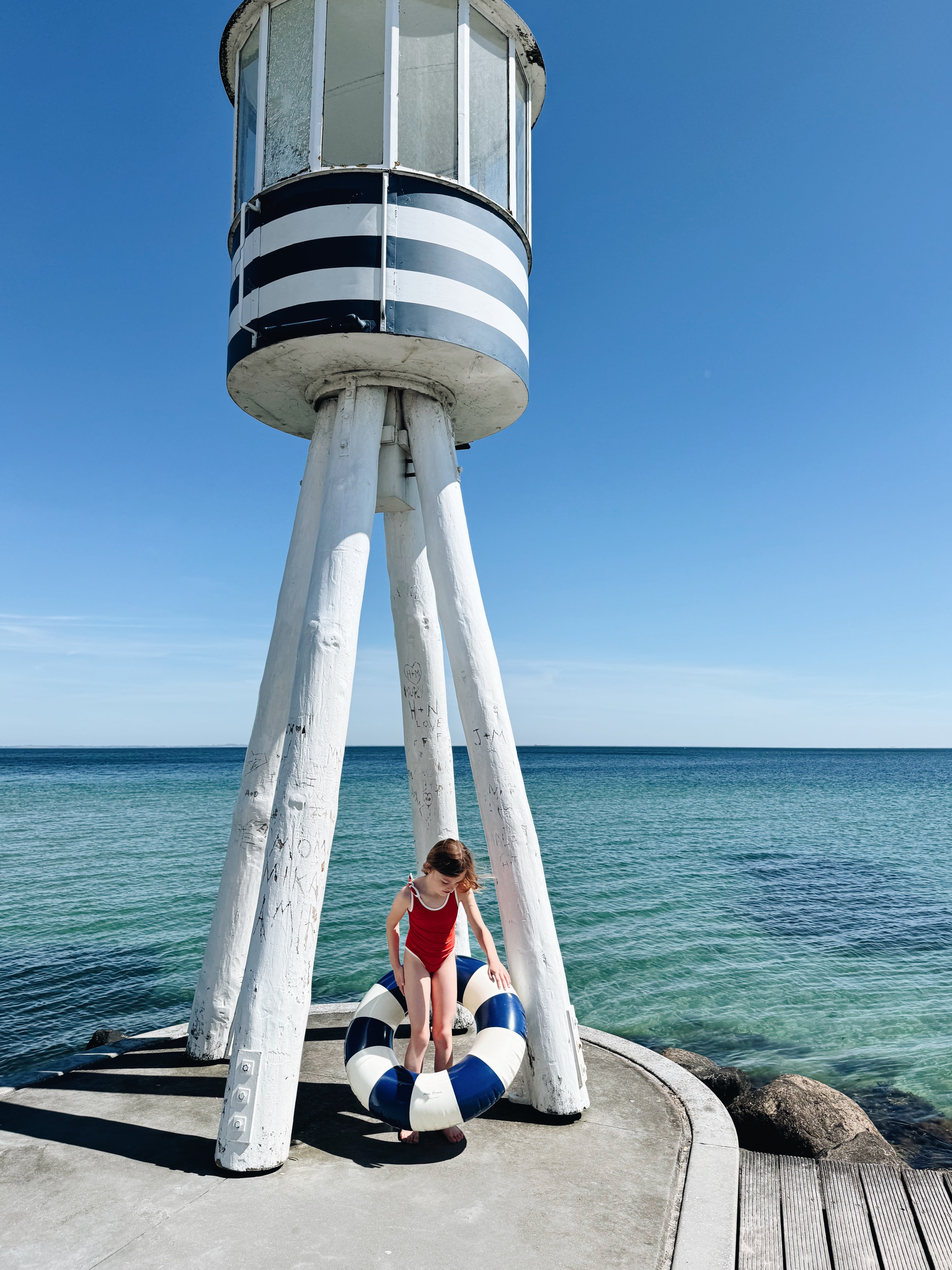 The cream-coloured contrast piping gives this style a timeless look that goes perfectly with our classic floats. Attached knot-bows on the shoulders adds a subtle feminine touch. Match with a tone-in-tone swim ring and swim goggles or mix your favourite colours for a beautiful complete look.