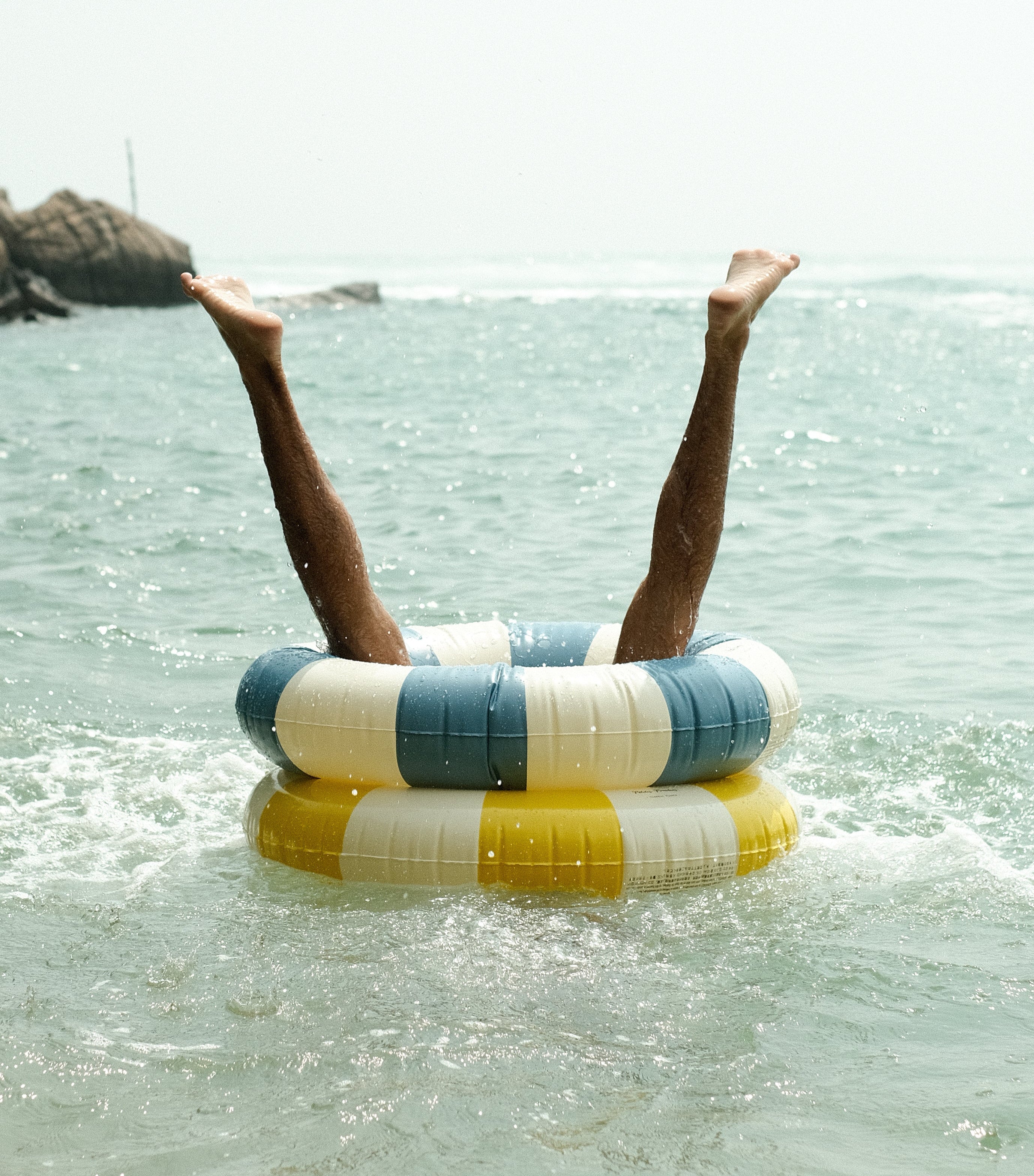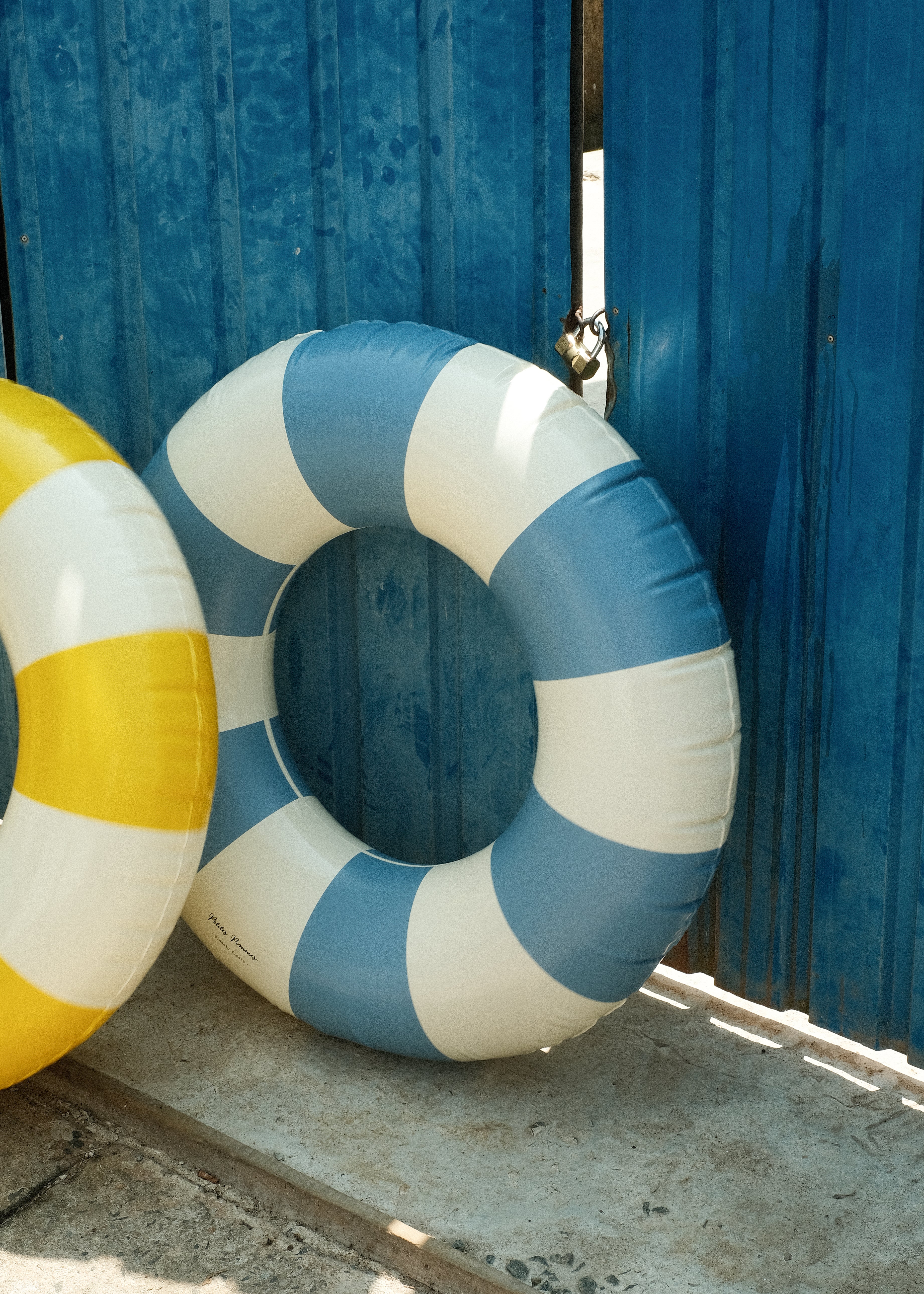 The Petites Pommes swim ring is a reborn childhood classic - made with the attention to detail we have strived to make it last for seasons. Our characteristic striped floats come in 4 different sizes for toddler to adult, and in a range of beautiful colours to complete any summer look!