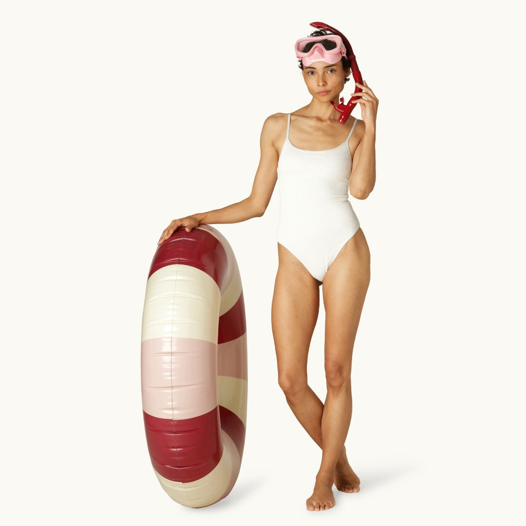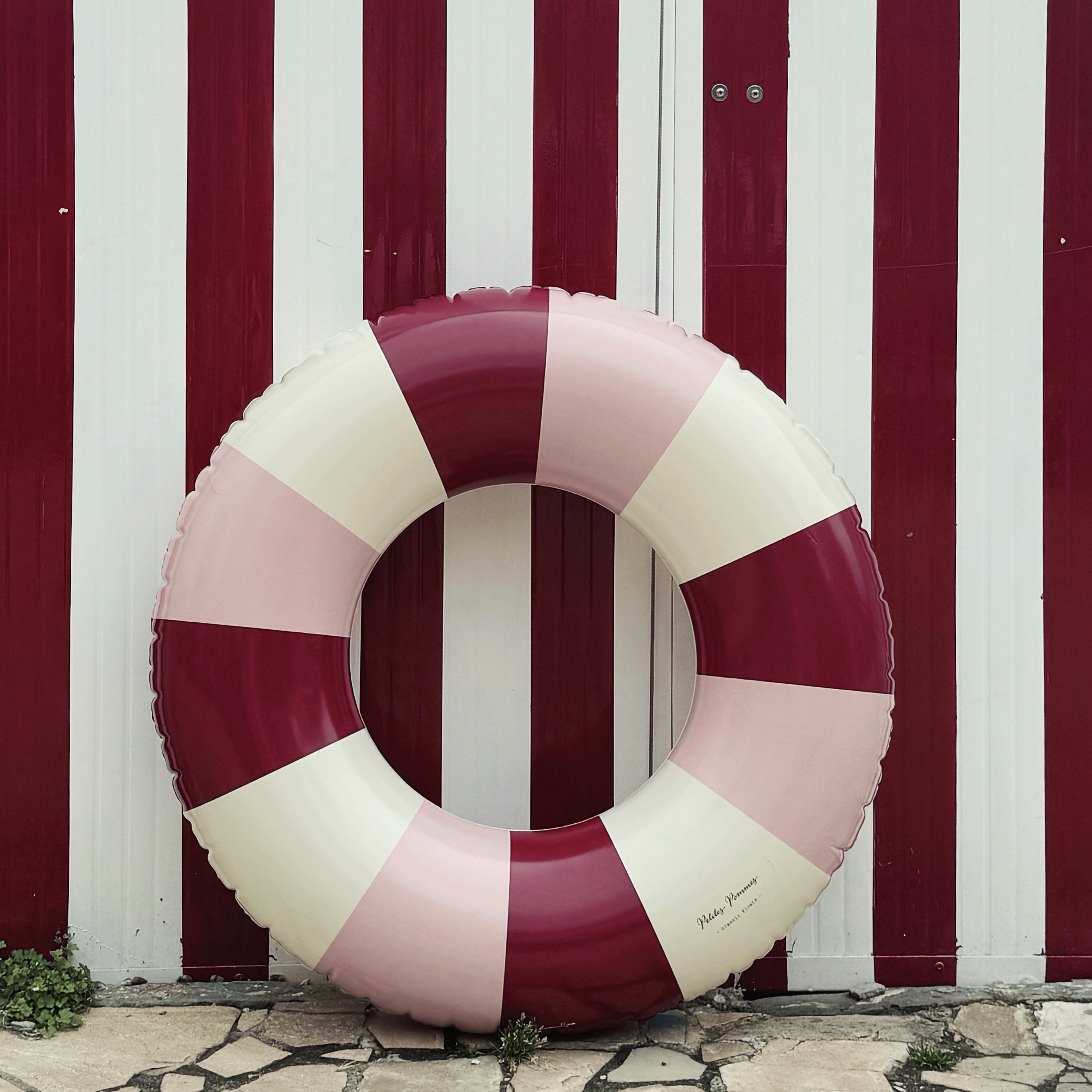 The Petites Pommes swim ring is a reborn childhood classic - made with the attention to detail we have strived to make it last for seasons. Our characteristic striped floats come in 4 different sizes for toddler to adult, and in a range of beautiful colours to complete any summer look!