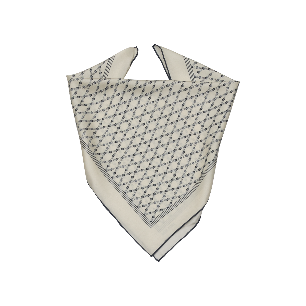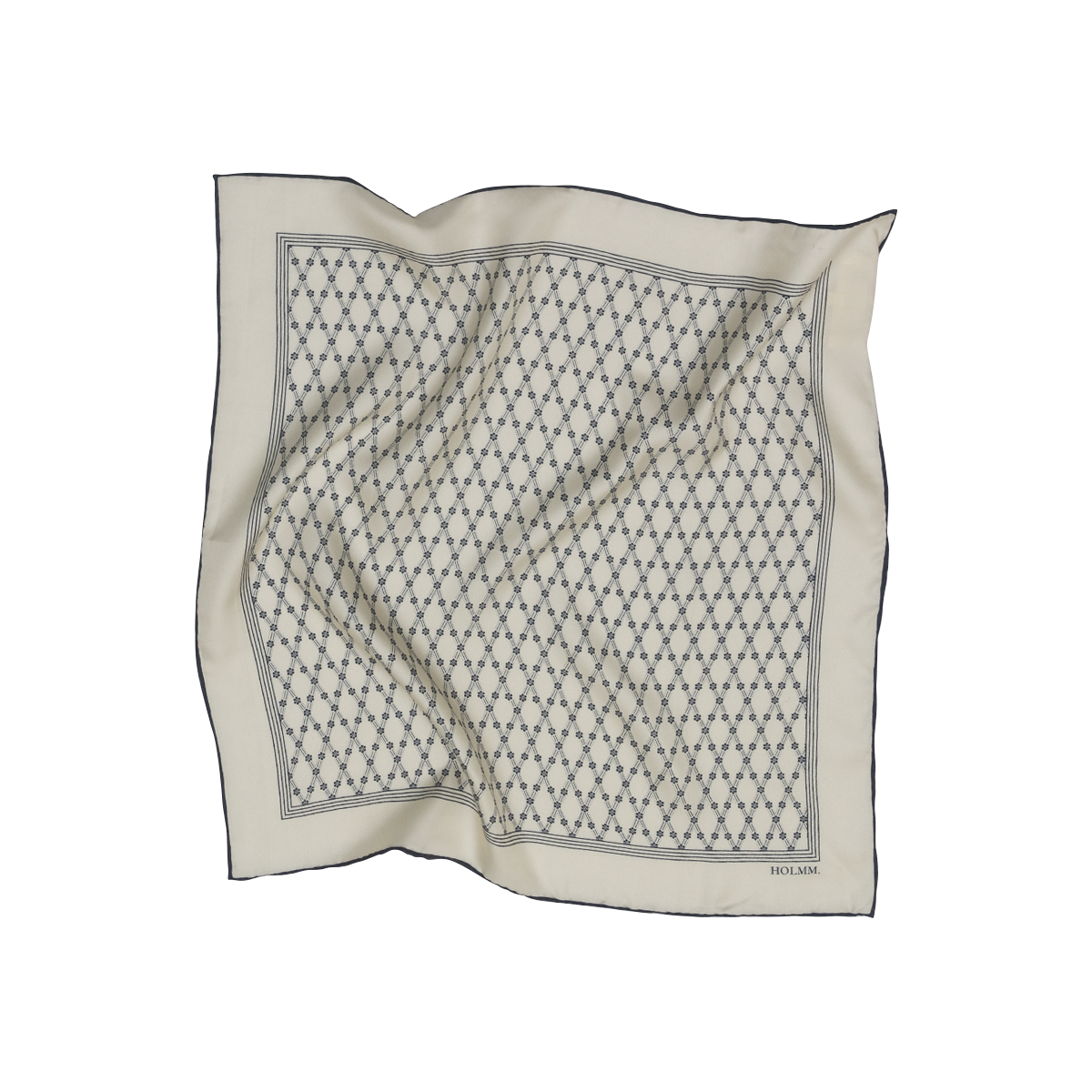 Crafted from a 100% silk twill woven fabric, this square scarf is embellished with HOLMMs exclusive printed artwork which adds a graphic edge to this accessory. This printed silk square scarf incorporates HOLMMs logo branding and is finished with a hand sewn edge.