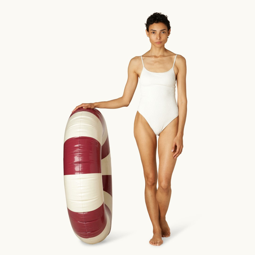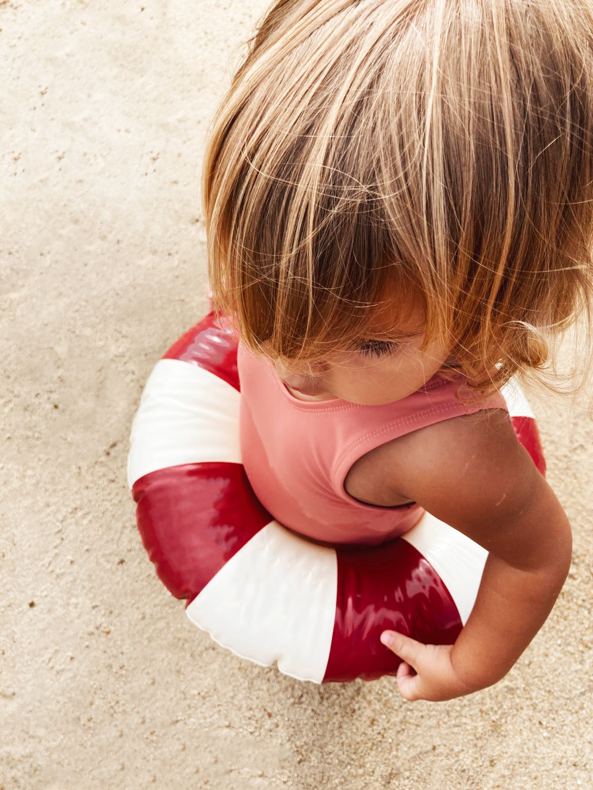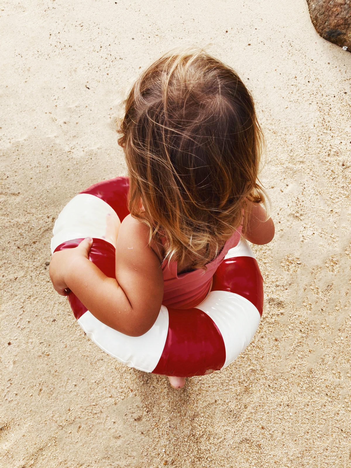 The Petites Pommes swim ring is a reborn childhood classic - made with the attention to detail we have strived to make it last for seasons. Our characteristic striped floats come in 4 different sizes for toddler to adult, and in a range of beautiful colours to complete any summer look!