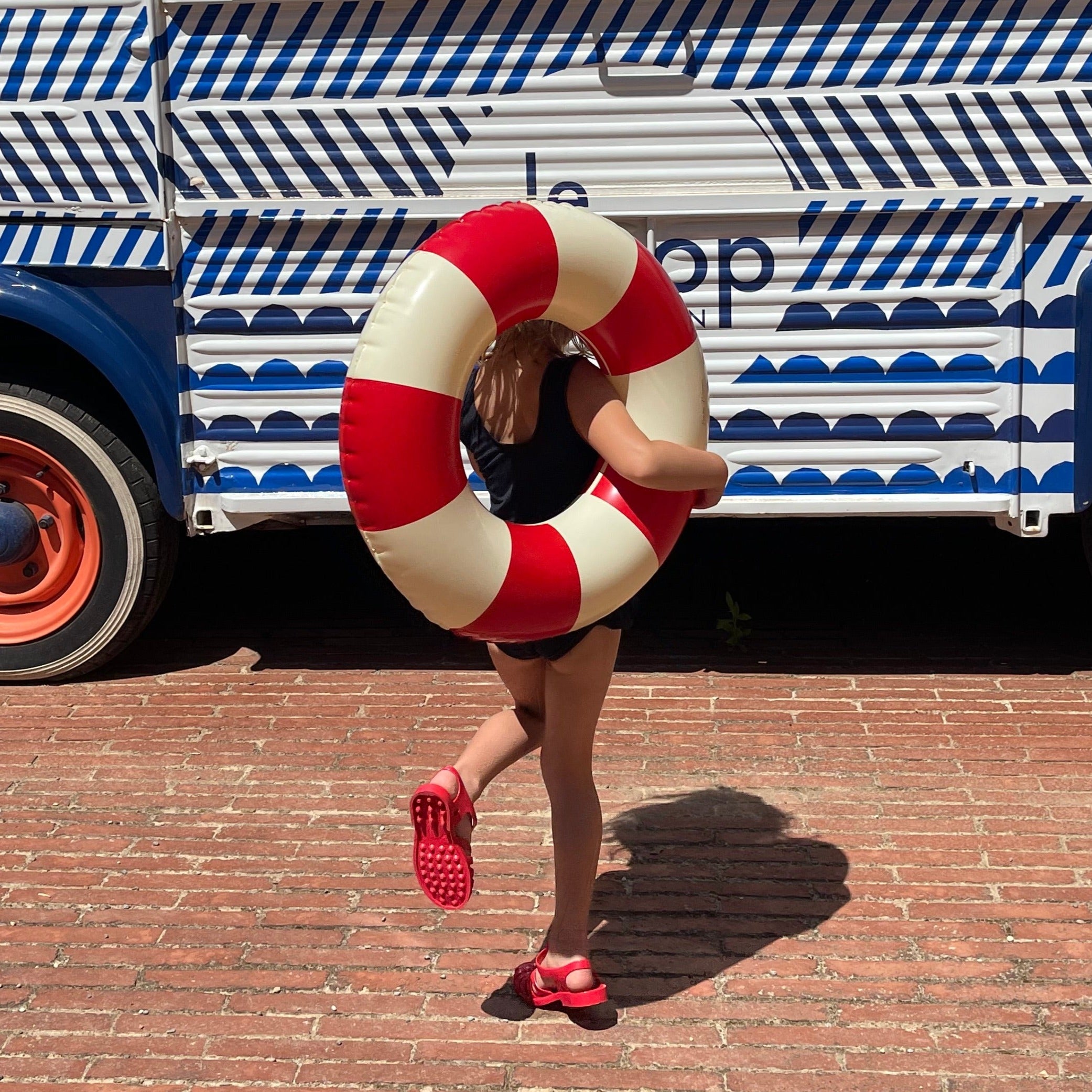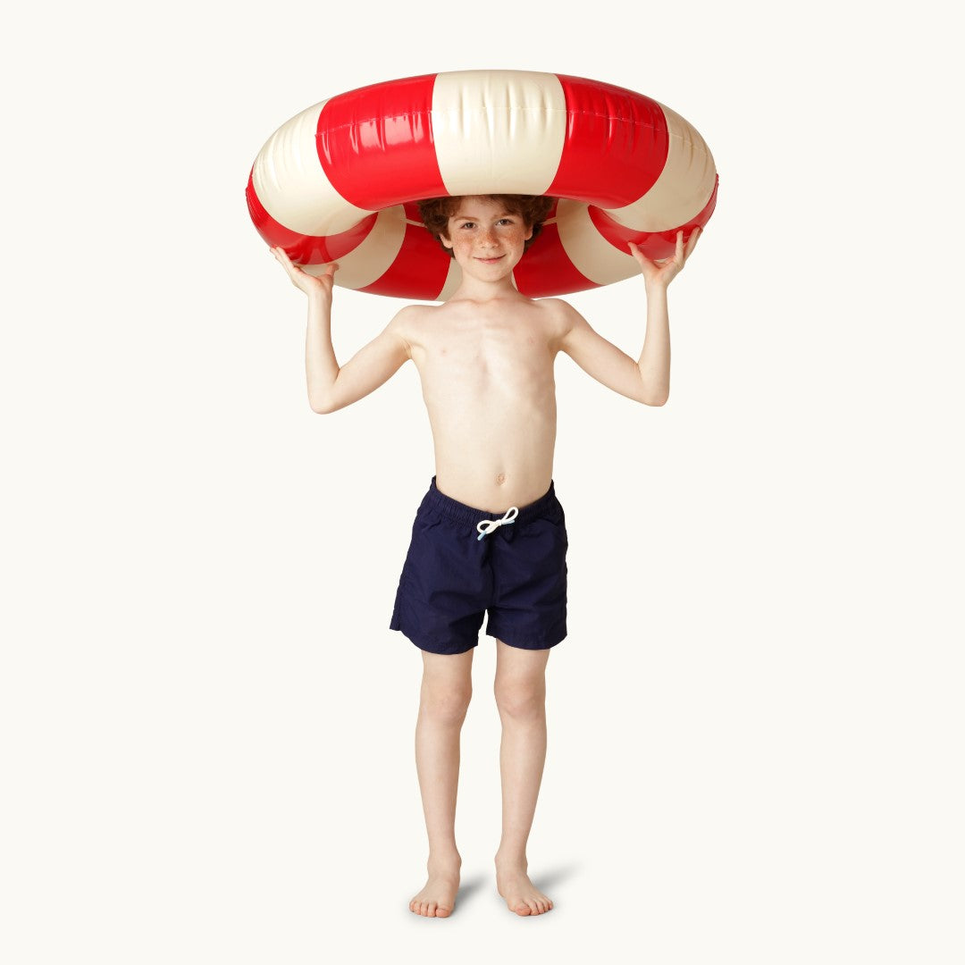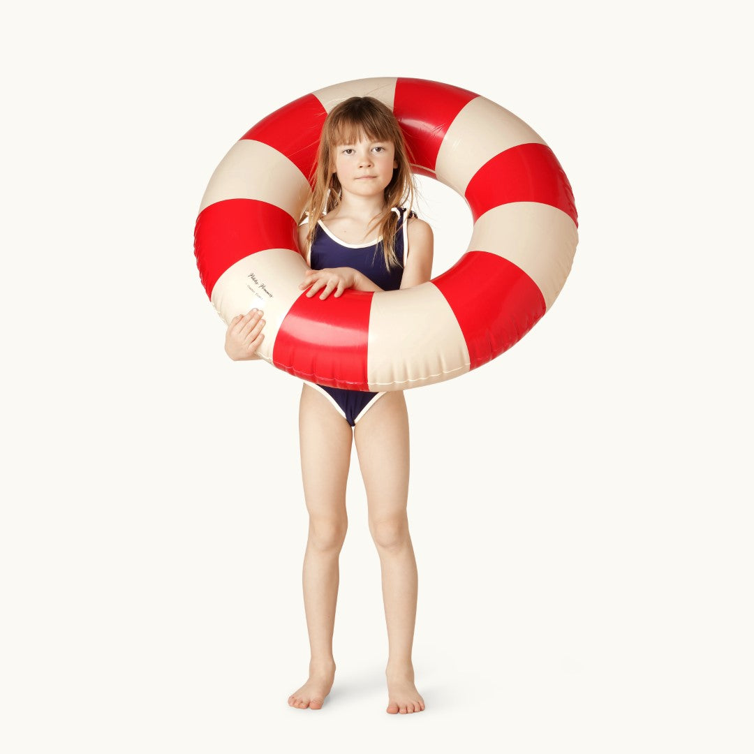 The Petites Pommes swim ring is a reborn childhood classic - made with the attention to detail we have strived to make it last for seasons. Our characteristic striped floats come in 4 different sizes for toddler to adult, and in a range of beautiful colours to complete any summer look!